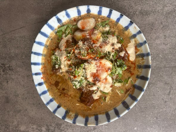このイベントの為に働いている、肥後橋の心優しきスパイスの怪物はらいそSparkleです。果物を使ったお酒に合うカレーやスパイシーなアテをお届け!
