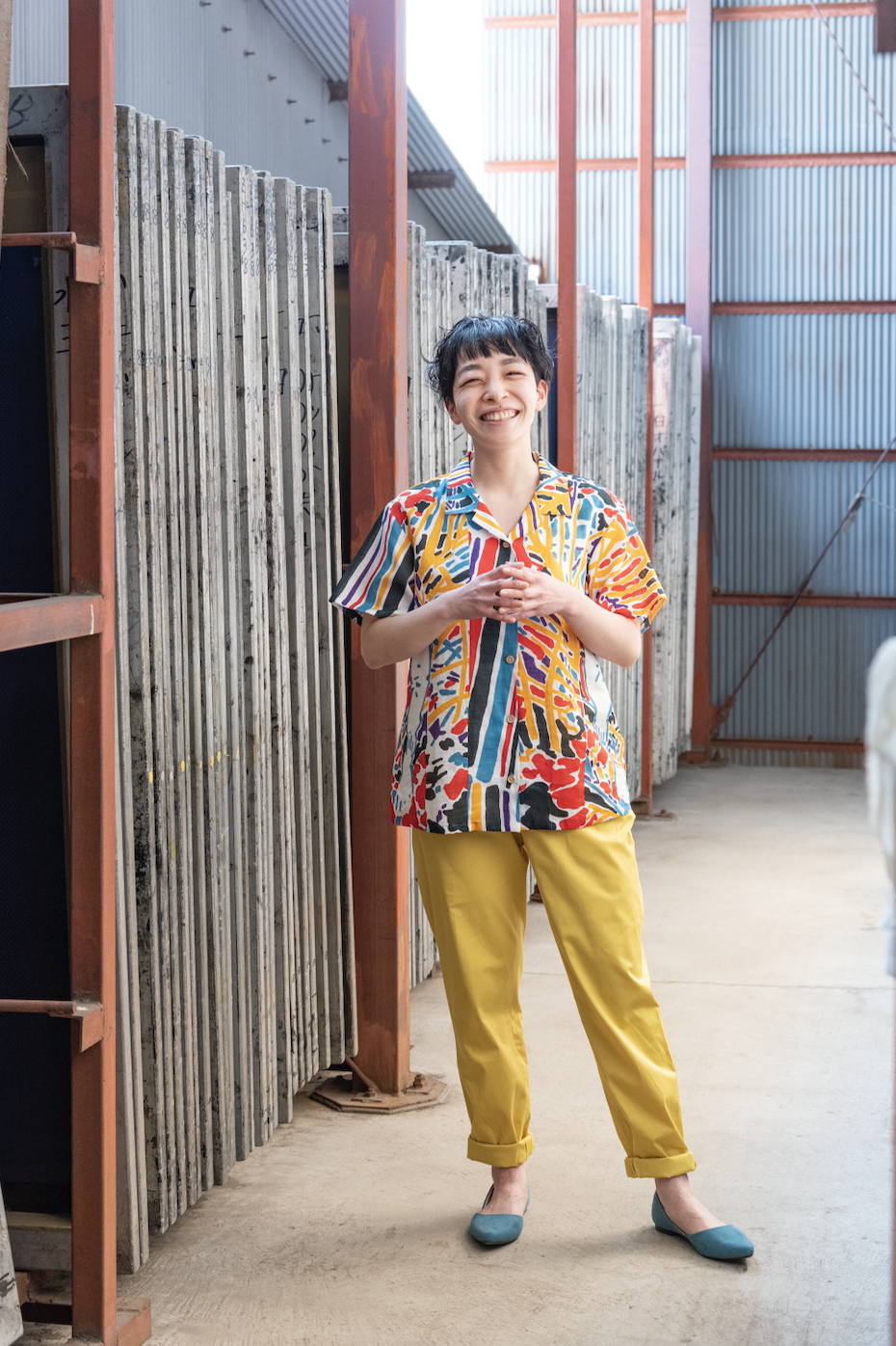 染工場にて配色の仕事をする傍ら、2019年よりテキスタイルブランド『iracchi(イラッチ)』をスタートしました。 テキスタイルとしても楽しめ、そして絵画の役割をも果たすような布を作りたいと考え、「イライラしがちな日常を楽しむことができる色柄」をテーマに“絵になる布”の制作を行います。