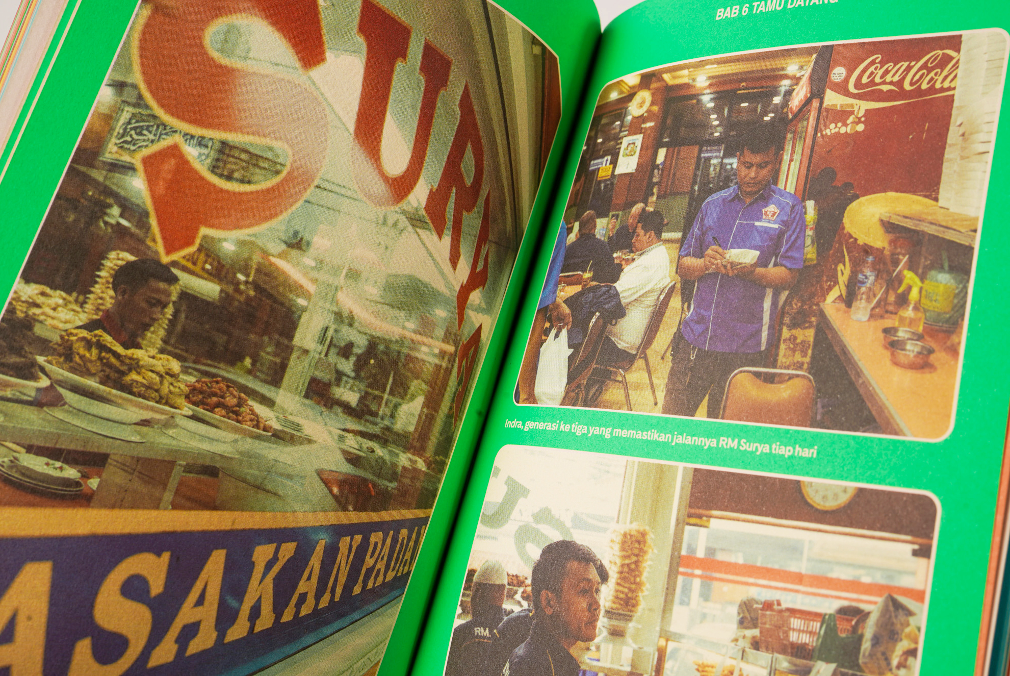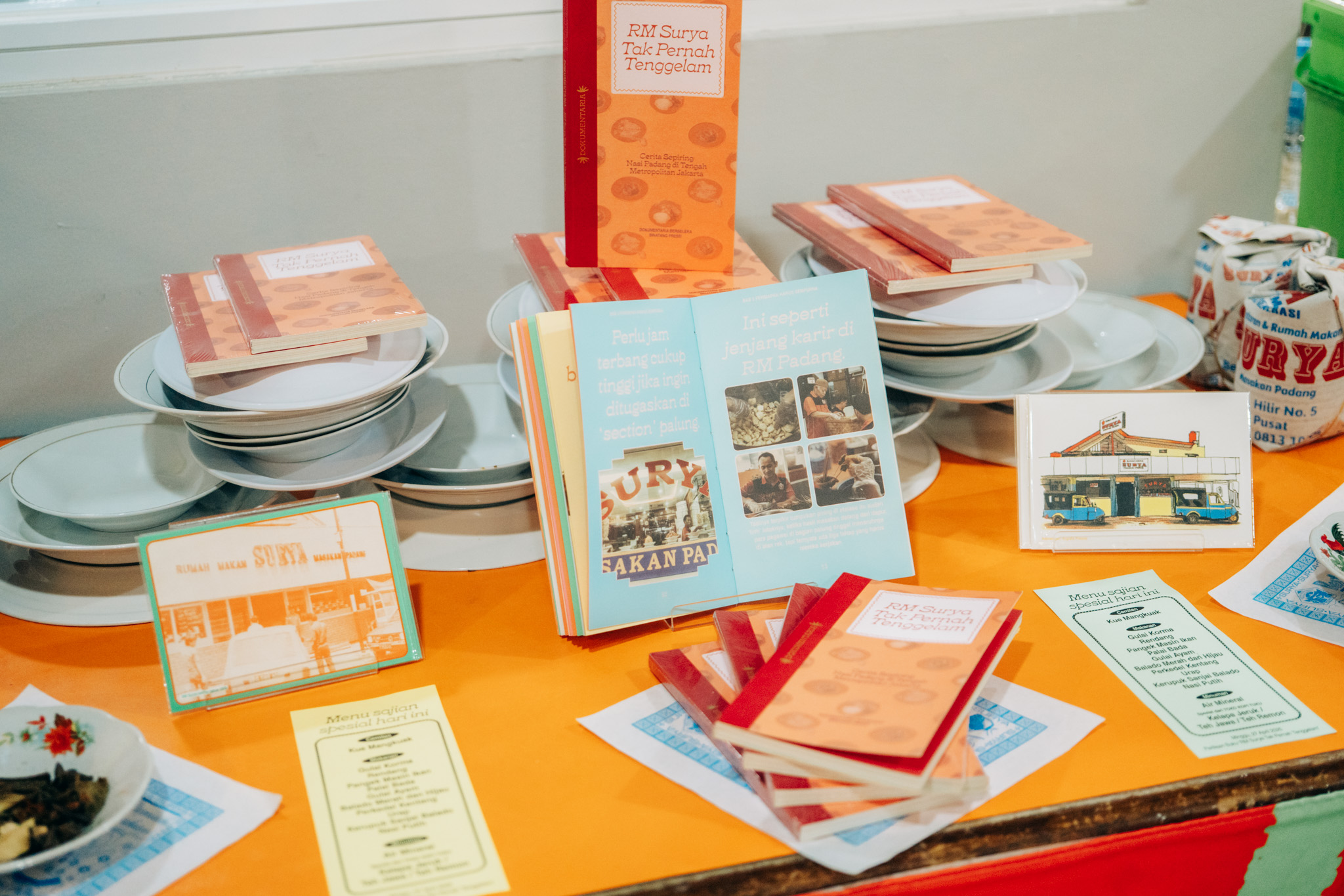 南ジャカルタのリソグラフスタジオであり出版も手がけるBinatang Press!の最新作「RM Surya Tak Pernah Tenggelam」。本書は、インドネシア、ジャカルタにあるレストランを通してインドネシアの食やジャカルタの街の歴史や変化を紹介した1冊。今回は、そんな本を通してインドネシアの食、そして、本作りについて話を伺います。