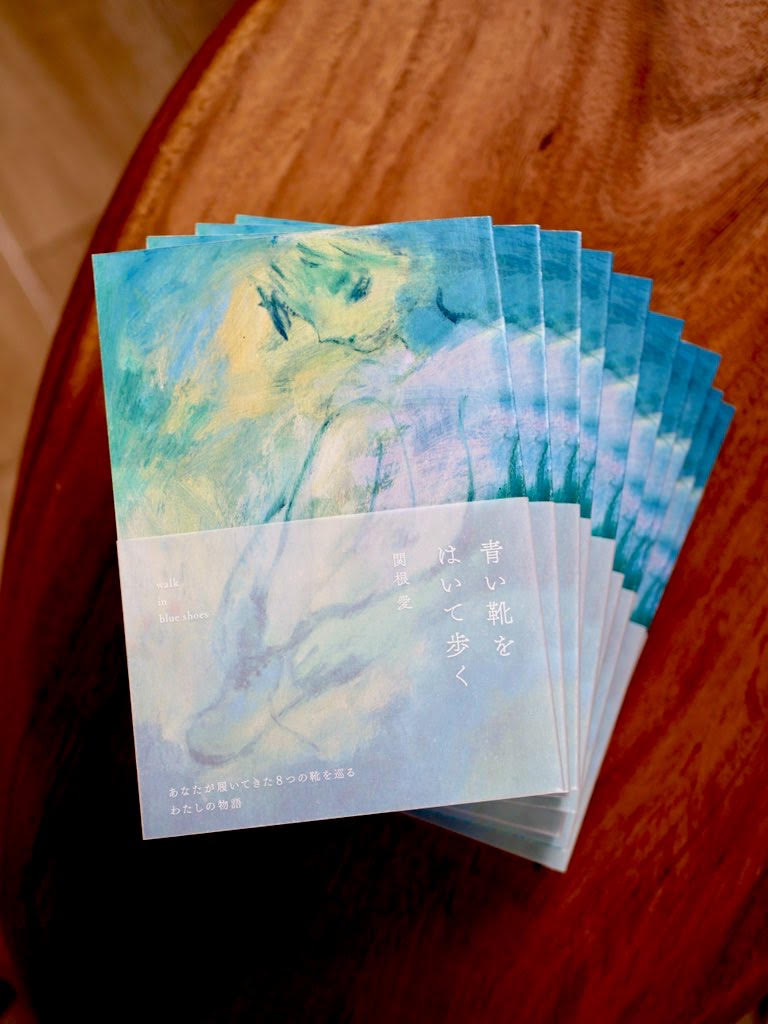 『青い靴をはいて歩く』主人公の女性が履いてきた八つの靴を巡る、実話をもとにした短編集。愛することと憎むこと、信じることと疑うことの間で苦しんだり揺れ動いたりしている人へ届いてほしいと願っています。
