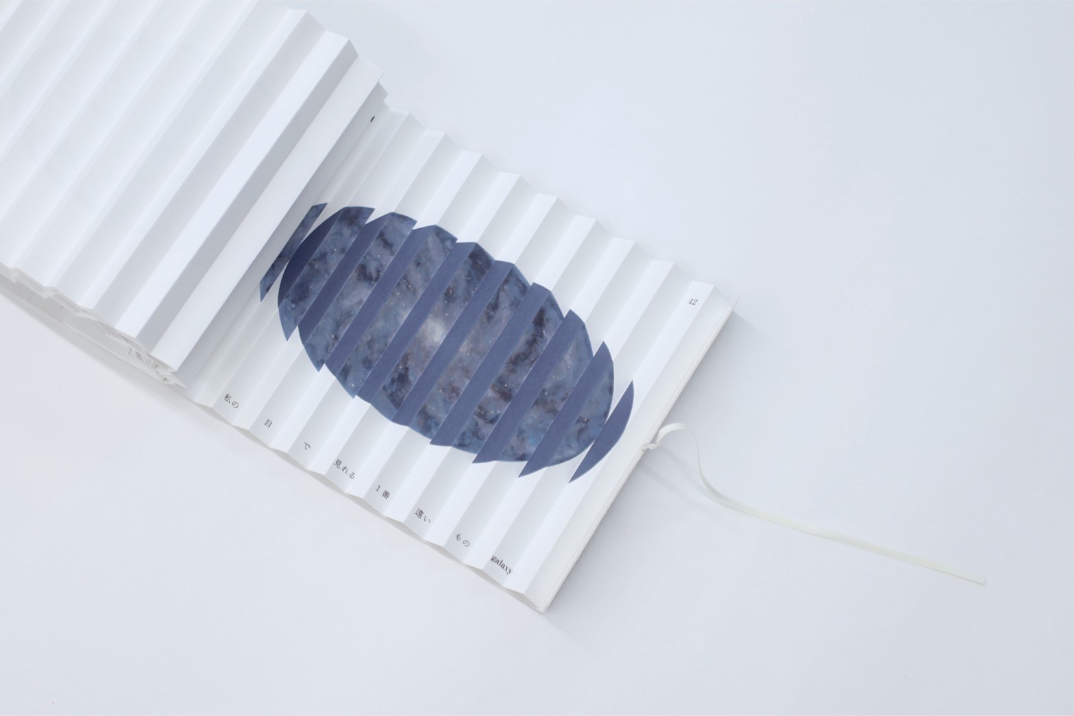 レンチキュラーの技法を用いた絵本。見る角度によっていろんなものが姿を表します。製本もお話も丸くつながっています。折りも製本も丁寧に手で仕上げました。